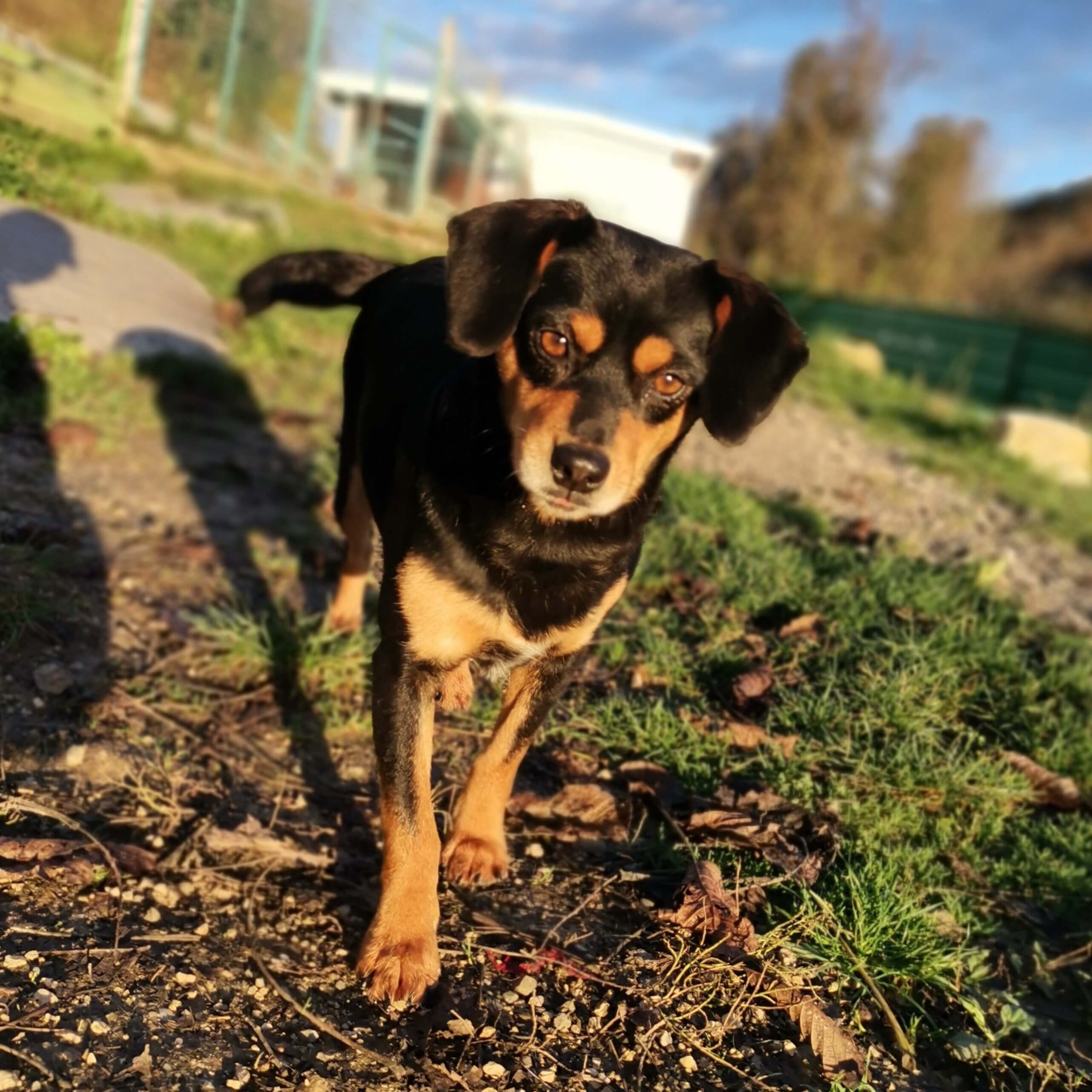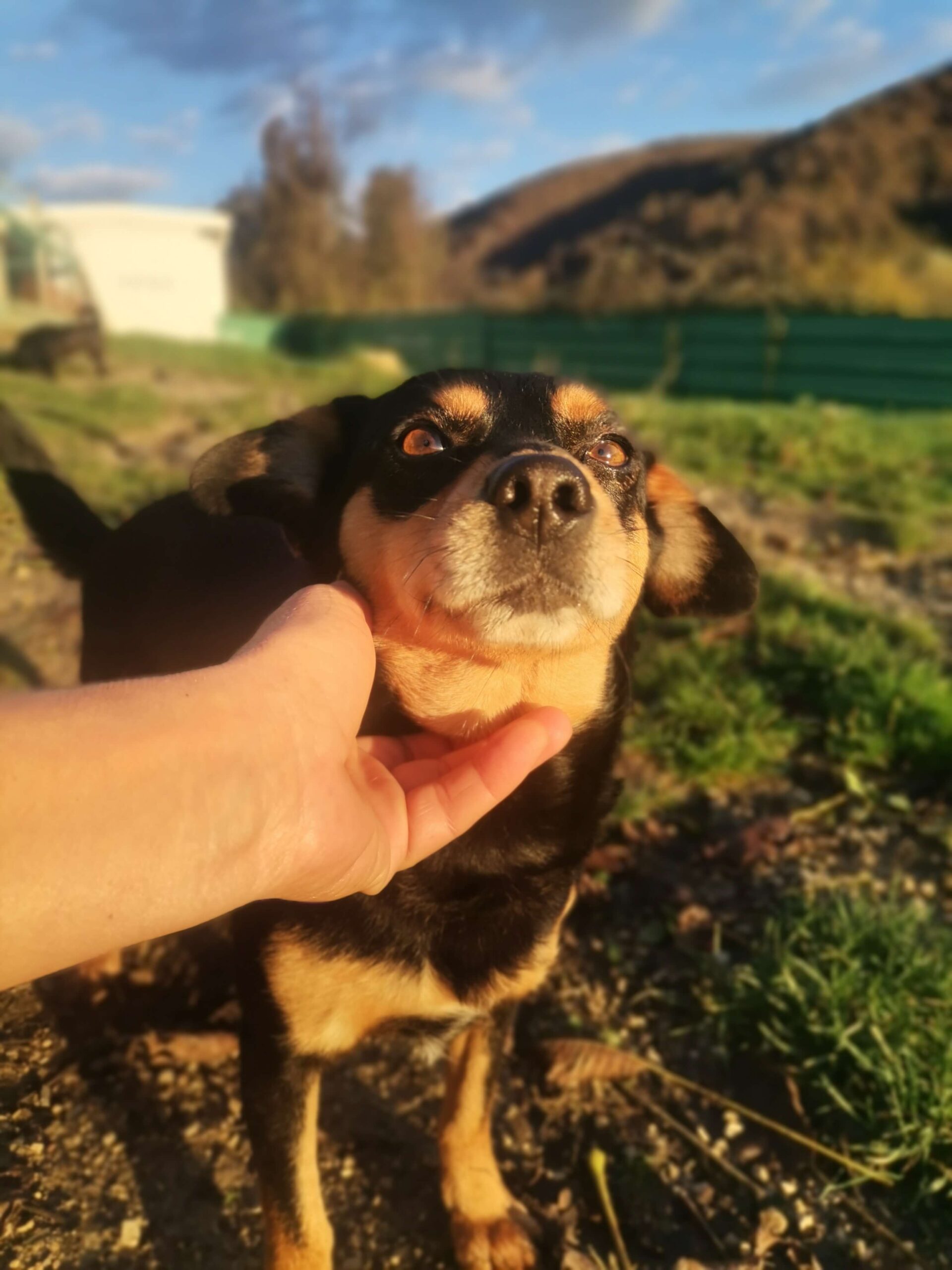 When she arrived at our shelter, Jenny was so small that she slipped through the fence at the gate and came to us seeking salvation. She immediately became a favorite that we carried in our coat pockets doing our daily tasks. Jenny is curious, determined, playful, obedient and learns quickly. She is one of those dogs from the shelter for whom there are no obstacles – either she will climb the fence to jump over her, or she will miraculously crawl through it to achieve her goals. Jenny does not show fear of unknown dogs, gets along well with everyone and leads in dog games. She is not afraid of people, but she is picky and only the special, those who give her full love and sincerely accept her special character, will get her heart.